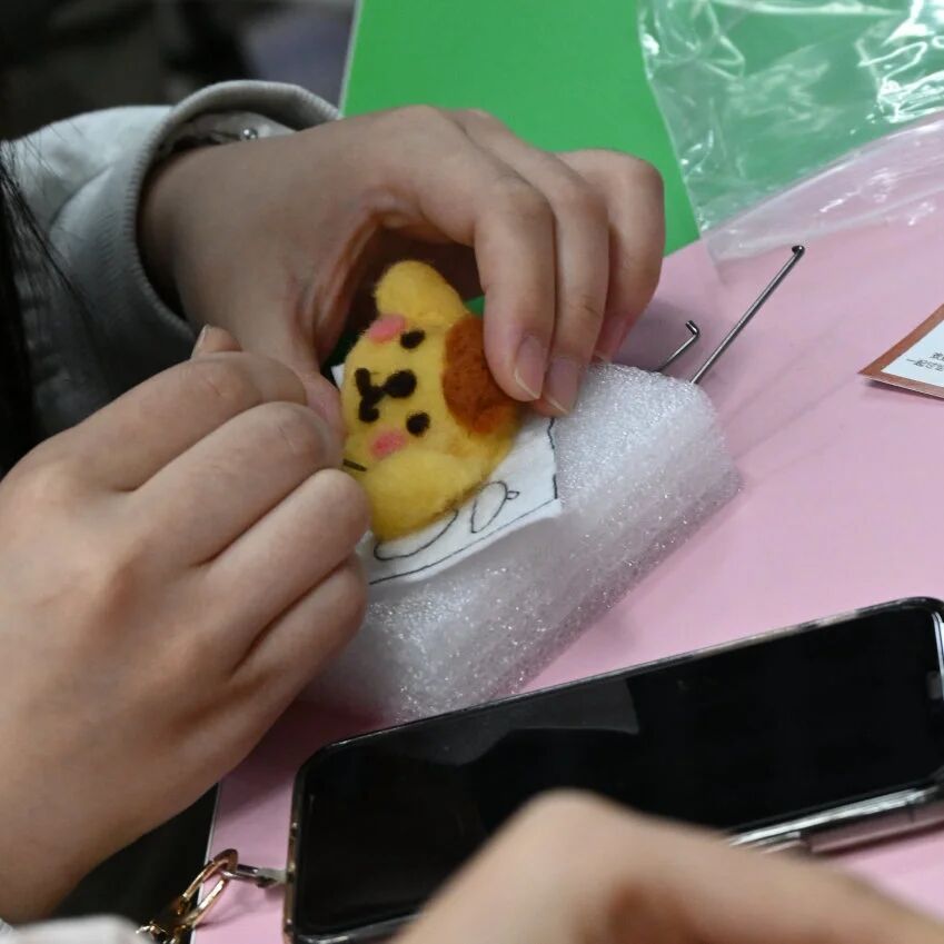 分享会结束后,最令人期待的非遗毛毡手工体验环节暖心上线!从羊毛材料的认知到毛毡戳制的技巧,老师耐心细致地讲解每一个步骤。川港青年们围坐一堂,一针一线地勾勒、塑形,在指尖的忙碌中感受非遗文化的魅力。原本蓬松的羊毛,在大家的巧手下逐渐变成一个个可爱的毛毡小物件。